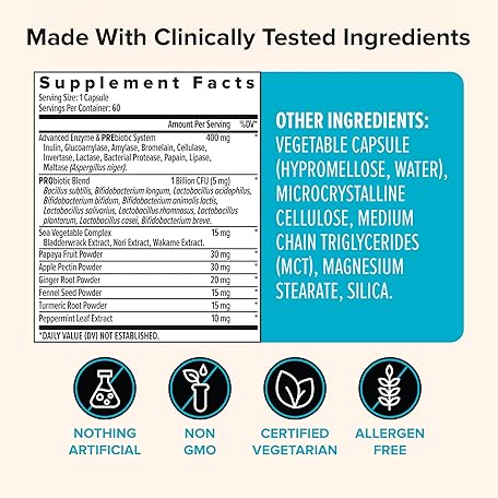 Thông tin sản phẩm Zenwise Health Digestive Enzymes for Gut Health & Bloating Relief - Multi Enzymes Digestion Supplement with Probiotics, Bromelain & Papaya for Digestive Health Support - Men & Women - 60 Count