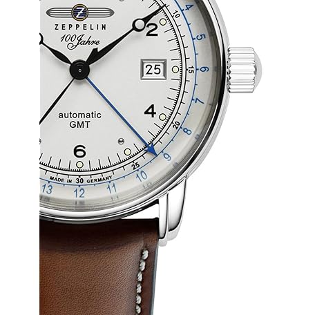 • Zeppelin 8666-1 Men's Automatic Watch with Dual Date and Leather Strap, strip