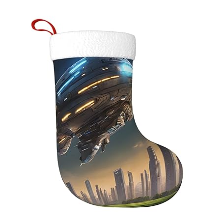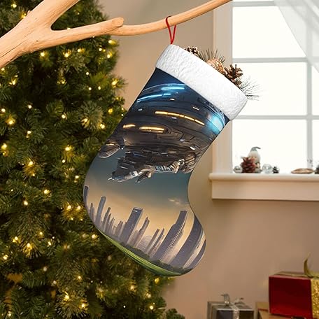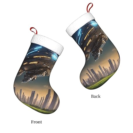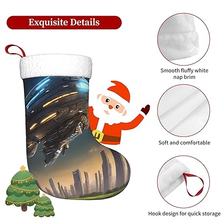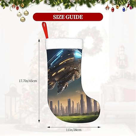 Thông tin sản phẩm ZERAOKE Christmas Stockings for Fireplace 18 Inch, UFO at Night, Plush Large Holiday Decor Socks with Cuff for Candy & Gifts, Festive Xmas Tree Ornament Stockings for Family Party