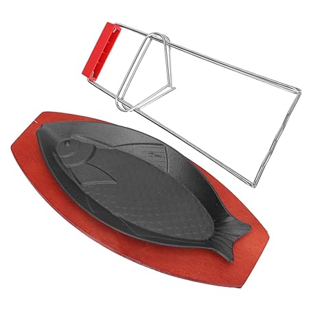 Zerodeko 1set Non-stick Cast Fish Shaped Grill Plate Tray for Teppanyaki Bbq and Outdoor Cooking Even Heat Distribution Compact Design