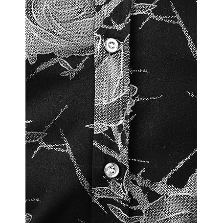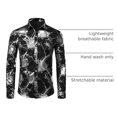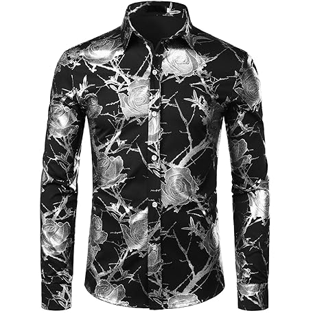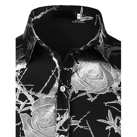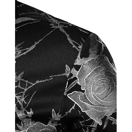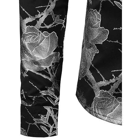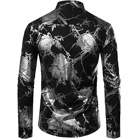 • ZEROYAA Mens Hipster 3D Golden Rose Floral Printed Slim Fit Long Sleeve Button Down Dress Shirts