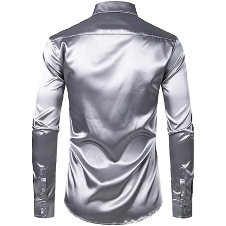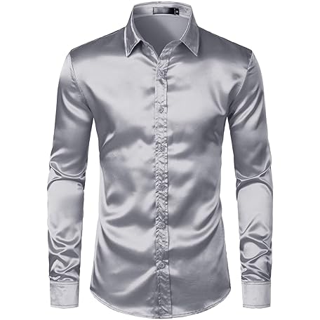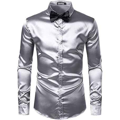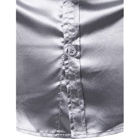 ZEROYAA Men's Luxury Shiny Silk Like Satin Button Up Dress Shirts