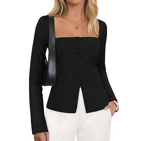 ZESICA Women's Fall Square Neck Blazers 2025 Casual Long Sleeve Button Up Work Business Fitted Blazer Jackets