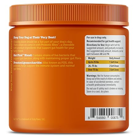 Thông tin sản phẩm Zesty Paws Probiotics for Dogs, Digestive Enzymes Gut Flora, Digestive Health, Diarrhea & Bowel Support, DE111, Dog Probiotics Soft Chew for Pet Immune System, Chicken, 90 Ct
