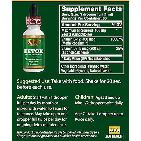 Thông tin sản phẩm ZETOX | Zeolite Detox for Kids and Adults | Enhanced with Methyl Vitamin B12 and D3 | Premium Grade Liquid Clinoptilolite Zeolite Drops | Supports Gentle Daily Detox, Energy, and Focus (60 Servings)