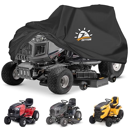 Thông tin sản phẩm Zettum Riding Lawn Mower Cover - Lawn Tractor Covers Waterproof & Heavy Duty, 600D Outdoor Mower Cover Universal fit with Storage Bag for John Deere, EGO, Toro, Craftsman, Husqvarna, Honda and More