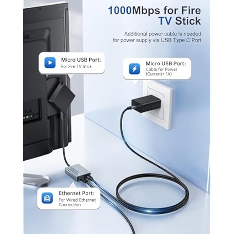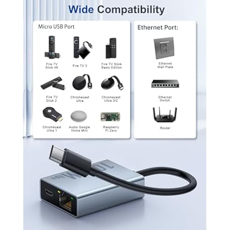 ZEXMTE 1000 Mbps Ethernet Adapter for Fire TV Stick, Micro USB to RJ45 Gigabit Ethernet Adapter Compatible with Fire TV Stick 4K/ 4K Max, Chromecast Ultra