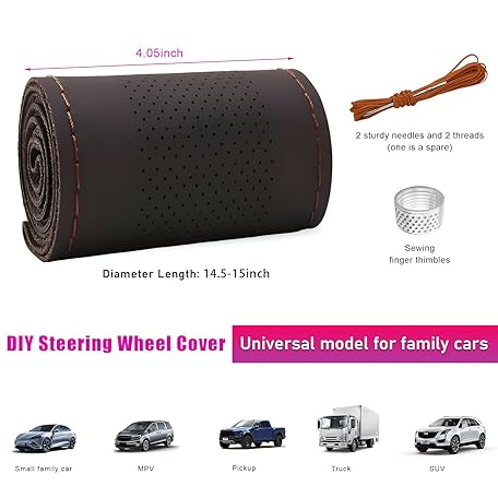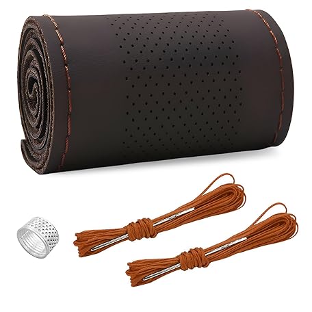 Sản phẩm Ziciner Genuine Leather Steering Wheel Cover, Stitch on Wrap, Breathable Anti-Slip Car Steering Wheel Protector for Max Diameter 15 Inch, DIY Sewing with Needles Thread (Coffee, Middle Hole) đang được bán với giá ưu đãi là $16.3391 tại nước Mỹ.