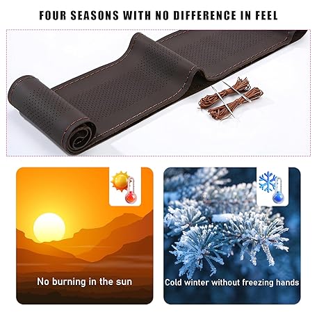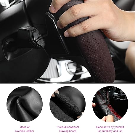 Thông tin sản phẩm Ziciner Genuine Leather Steering Wheel Cover, Stitch on Wrap, Breathable Anti-Slip Car Steering Wheel Protector for Max Diameter 15 Inch, DIY Sewing with Needles Thread (Coffee, Middle Hole)