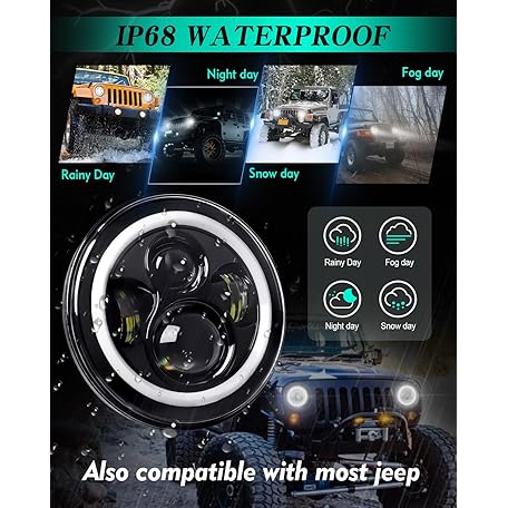 Sản phẩm ZIMABLUE ZIMABLUE 7 inch led Headlight Round 2pc Projector 7 inch Halo led Headlight H6024 DOT Approved Hi/Lo Beam DRL Amber Turn Signal Compatible with Jeep Wrangler JK TJ CJ Compatible with Chevy and miata đang được bán với giá ưu đãi là $65.3891 tại nước Mỹ.