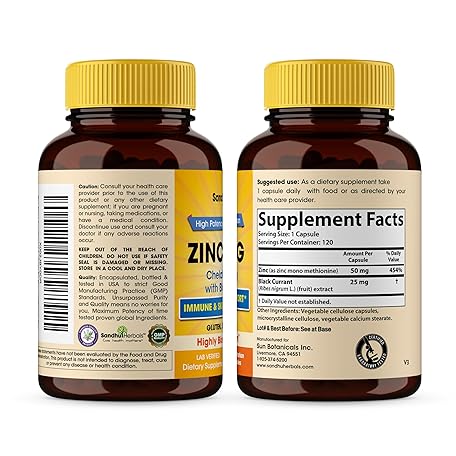 Sản phẩm Zinc Supplements for Men and Women | Zinc 50mg with Black Currant 120 Vegetarian Capsules | Highly Absorbable Form for Immune Support | Zink 50 mg Supplement Promotes Skin Health đang được bán với giá ưu đãi là $21.7891 tại nước Mỹ.
