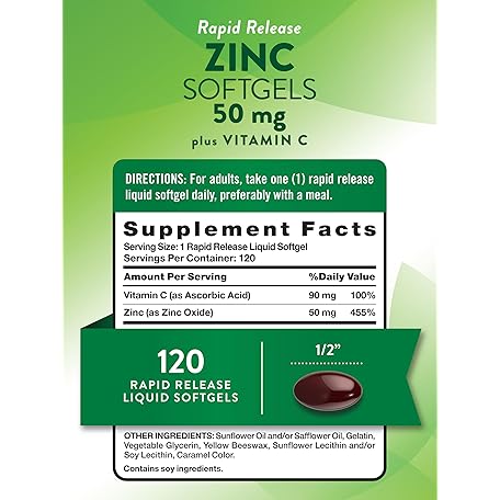 Sản phẩm Zinc with Vitamin C | 50mg | 120 Softgels | Non-GMO & Gluten Free Supplement | by Natures Truth đang được bán với giá ưu đãi là $10.3332 tại nước Mỹ.