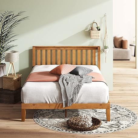 Thông tin sản phẩm Zinus Alexia Wood Platform Bed Frame with headboard, Solid Wood Foundation with Wood Slat Support, No Box Spring Needed, Easy Assembly, Rustic Pine, Full