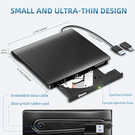 Sản phẩm Ziweo External DVD Drive USB 3.0 Type-C CD Burner Portable CD +/-RW Drive DVD Player for ROM Rewriter Burner Compatible with Laptop Desktop PC Windows MacBook Linux Mac OS đang được bán với giá ưu đãi là $20.6555 tại nước Mỹ.