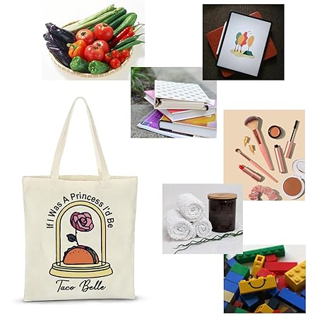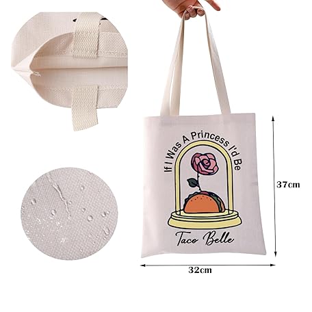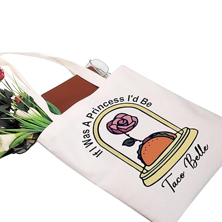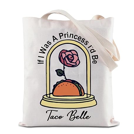 • ZJXHPO Taco Belle Tote Bag If I Was A Princess I'd Be Taco Belle Reusable Grocery Shopping Bag Taco Lover Gift