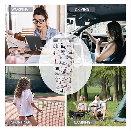 Thông tin sản phẩm ZNYYZYBA 40 oz Tumbler With Handle and Straw, Cat Tumbler With Leak Proof Lid, Reusable Stainless Steel Insulated Travel Coffee Mug, Gifts for Cat Lovers