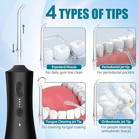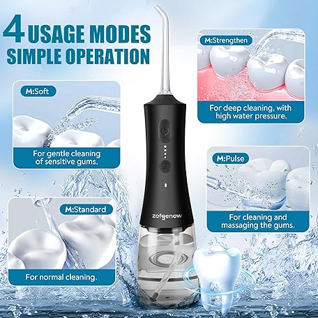 Thông tin sản phẩm ZOFGENOW Cordless Water Dental Flosser for Teeth, 300ml Rechargeable Oral Irrigator Cleaning, 4 Modes & 6 Jet Tips, IPX7 Waterproof, Portable Dental Flosser for Braces & Travel, Black
