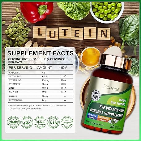 Thông tin sản phẩm zooone Lutein and Zeaxanthin Eye Vitamins, Eye Vitamin and Mineral Supplement with Vitamin C E Zinc Copper, Vision Support for Macular Degeneration, Eye Health Pills for Adults & Seniors, 90 Capsules