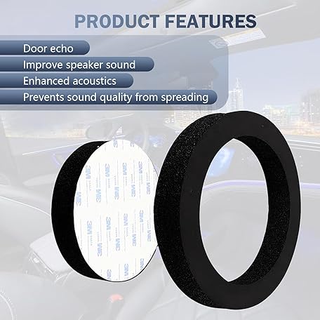• Zosgrew 4 PCS 6.5" Speaker Foam Enhancer, 5.5" ID 7.6" OD Self-adhesive Audio Speaker Foam Rings, Automotive Slow Rebound Stereo Sound Modification Accessory, for Most Cars (Black)