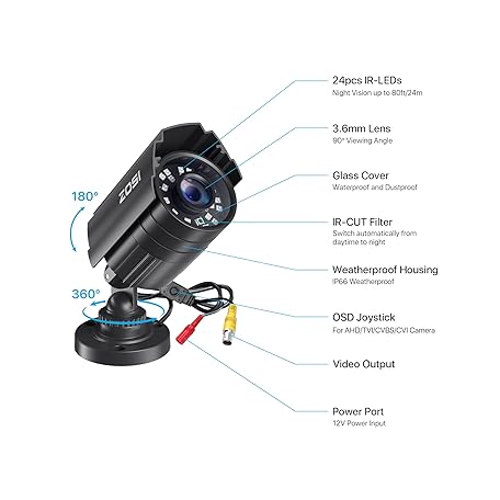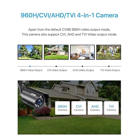 Thông tin sản phẩm ZOSI 1080P CCTV Camera Outdoor Indoor Hybrid 4 in 1 HD TVI/CVI/AHD/CVBS Home Security Cameras System,Night Vision,Waterproof Metal Housing Bullet Cam For 960H,720P,1080P,5MP,4K analog Surveillance DVR