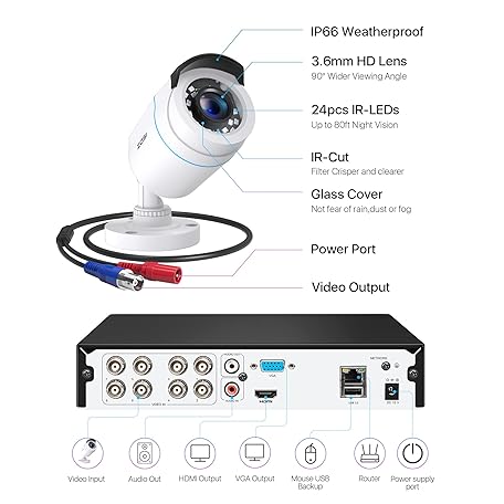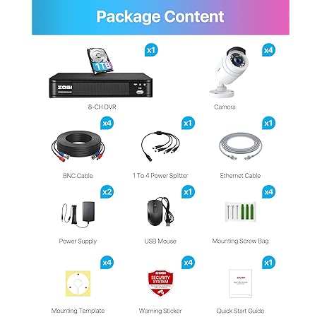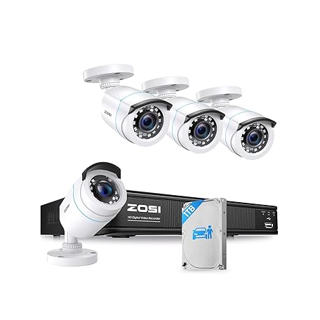 Thông tin sản phẩm ZOSI H.265+ Full 1080p Home Security Camera System Outdoor Indoor, 5MP-Lite CCTV DVR 8 Channel with AI Human Vehicle Detection, 4 x 1080p Weatherproof Surveillance Camera, 80ft Night Vision, 1TB HDD