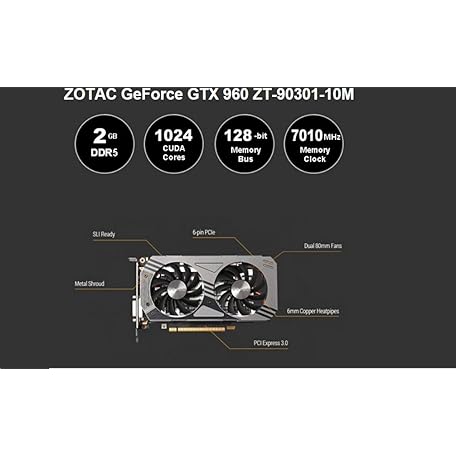 Thương hiệu ZOTAC là cái tên nổi tiếng được rất nhiều khách hàng trên thế giới chọn lựa. Với kiểu dáng đẹp mắt, sang trọng, sản phẩm ZOTAC GeForce GTX 960 2GB GDDR5 PCI Express 3.0 HDMI DVI DisplayPort SLI Ready Graphic Card ZT-90301-10M là sự lựa chọn hoàn hảo nếu bạn đang tìm mua một món cho riêng mình.