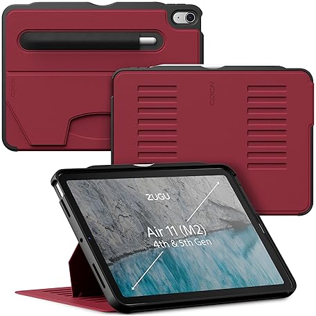 Thông tin sản phẩm ZUGU CASE for iPad Air 11 (M3 2025 / M2 2024) iPad Air 4 & 5 10.9 Inch (2020/2022) - Protective, Ultra Thin, Magnetic Stand, Sleep/Wake Cover with Apple Pencil Charging & Storage - Scarlet Red