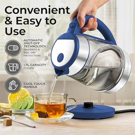 Zulay Kitchen Fast Boiling Electric Water Kettle - 1.7L, 1500W, Auto Shut-Off for Overboil & Boil Dry Protection, Cool-Touch Handle, 360° Base - Rapid Teapot Boiler For Coffee & Tea - Blue
