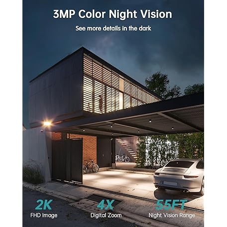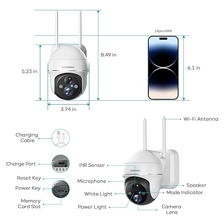 Thông tin sản phẩm ZUMIMALL Security Cameras Wireless Outdoor, 360°View, 2K Battery Powered Cameras for Home Security, 3MP Color Night Vision, 2-Way Talk, IP66, AI Analysis, Cloud Storage, Alexa