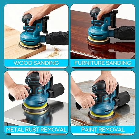 ZUYIYI 5 Inch Cordless Orbital Sander for Makita 18v Battery (NOT Included), Electric Palm Random Orbit Sander with Dust Collector, 6 Variable Speeds, 24Pcs Sandpaper for Sanding Polishing Wood