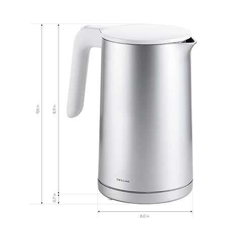 ZWILLING Enfinigy Cool Touch 1.5-Liter Electric Kettle, Cordless Tea Kettle & Hot Water, Silver