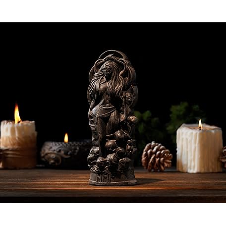 • ZXPJUA Hel Statue Goddess of Death,Norse Pantheon, Viking Pagan Asatru Heathen Goddess and God Scandinavian Gods Altar Mythology (Black)