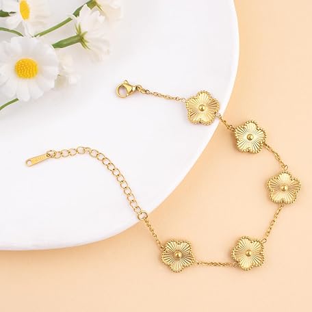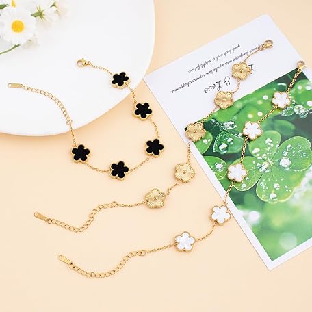 ZZLTAWS 18K Silver/Gold Bracelets Set for Women (Skin-Friendly&Fade-Resistant) Four Leaf Clover Trendy Lucky Bracelet (Double Sided) Silver/Gold Jewelry Set for Women Birthdays Holidays Gifts 3pcs