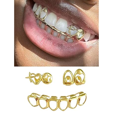ZZQPSD 3PC Gold Grillz Set Open Face Hip Hop Teeth Jewelry Gold Plated Dental Caps for Top Bottom Removable Grills for Men Women (Silver)