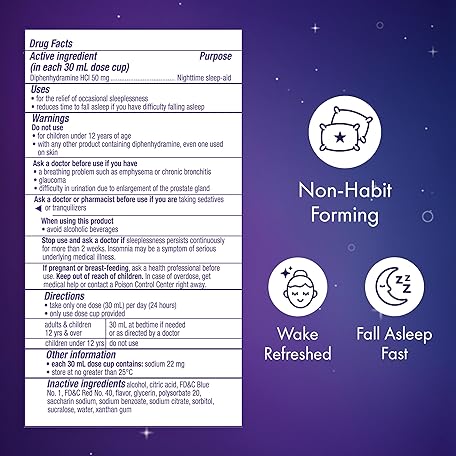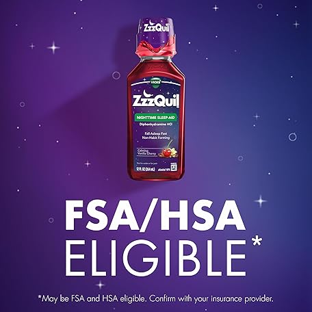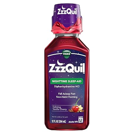 Thông tin sản phẩm ZzzQuil, Nighttime Sleep Aid Liquid, 50 mg Diphenhydramine HCl, No.1 Sleep Aid Brand, Fall Asleep Fast, Non-Habit Forming, Calming Vanilla Cherry, 12 FL OZ