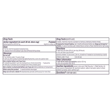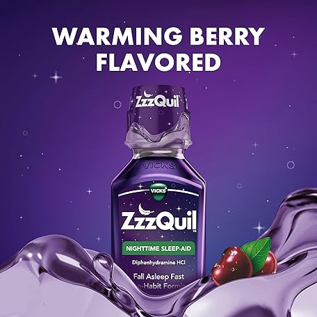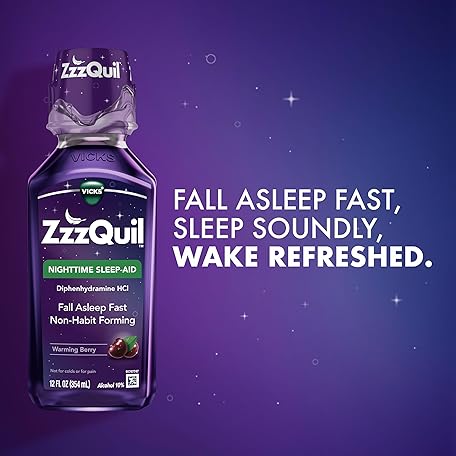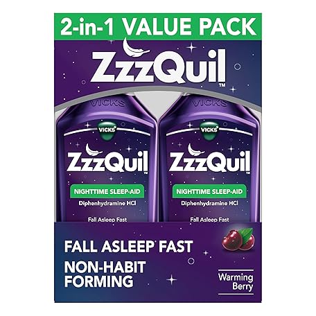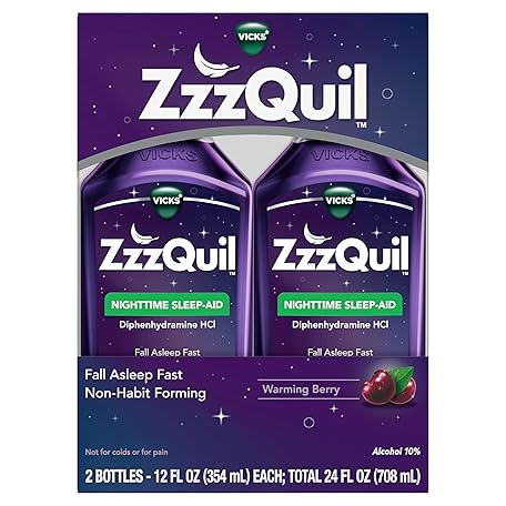Thông tin sản phẩm ZzzQuil, Sleep Aid, Nighttime Sleep Aid Liquid, 50 mg Diphenhydramine HCl, Fall Asleep Fast, Non-Habit Forming, Warming Berry Flavor, 12 FL OZ (Pack of 2)